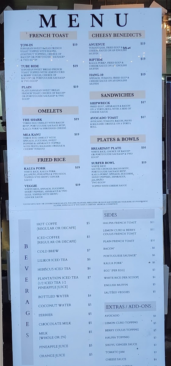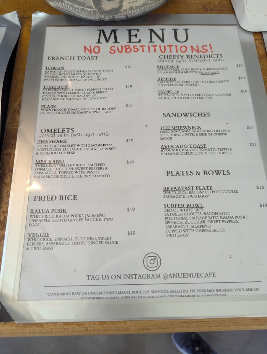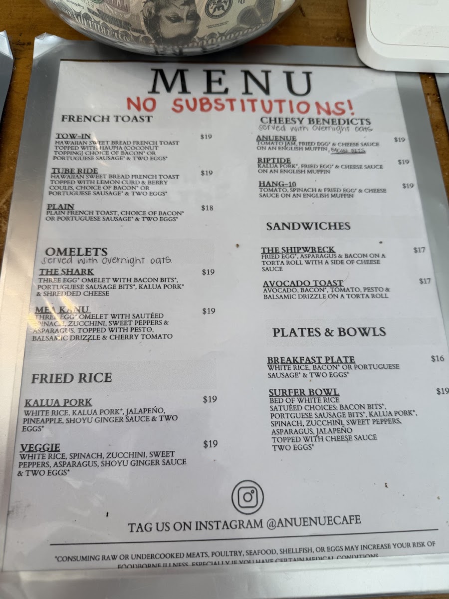 Anuenue Cafe offers a delightful blend of island flavors and cozy ambiance, making it a perfect spot to enjoy a meal surrounded by the lush beauty of Koloa, HI. From fresh, locally sourced ingredients to unique dishes that celebrate the tastes of Hawaii, this cafe has something for everyone. Whether you're in the mood for a hearty breakfast, a light lunch, or a flavorful dinner, the Anuenue Cafe Menu features a variety of mouthwatering options. The menu caters to all tastes, with dishes that highlight the vibrant flavors of the islands, along with vegetarian and gluten-free options. As you explore the menu, you'll find comforting classics, innovative creations, and delicious desserts that capture the essence of island dining.